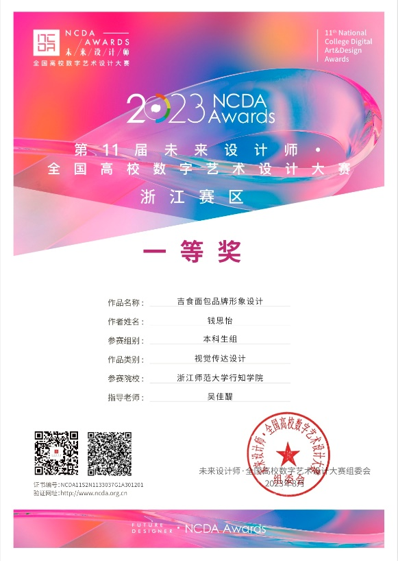近日,第11届“未来设计师全国高校数字艺术设计大赛”喜讯频传,我院学子佳绩不断。徐婕、陈小超、陈双团队参赛项目《安芯空调》和钱思怡参赛项目《吉食面包品牌形象设计》双获省赛一等奖,徐可心参赛项目《NAKUPENDA品牌形象设计》喜获省赛二等奖。