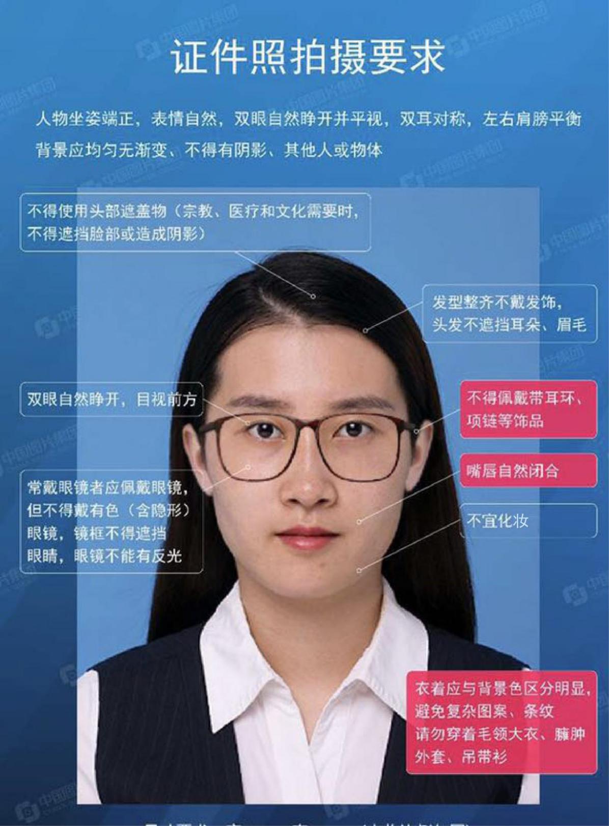 (3)佩饰及遮挡物:不得使用头部覆盖物(宗教、医疗和文化需要时,不得遮挡脸部或造成阴影)。不得佩戴耳环项链等饰品。