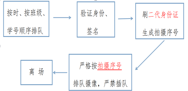 (2)各学院根据安排的拍摄时间,组织学生准时到采集地点,以班级为单位进行拍摄,拍摄时保持安静,听从安排,拍摄完成后有序离场,避免聚集;