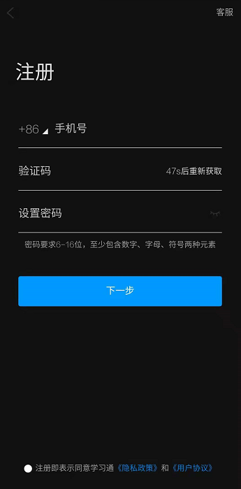下载学习通APP软件,通过手机号+验证码注册,注意要勾选同意服务条款(图1);
